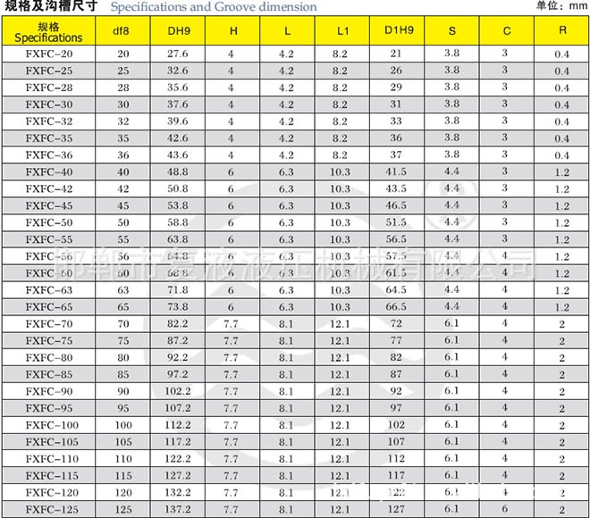 性能和用途:由一個異形環和兩個O形橡膠密封圈組成,異形環帶有一個密封刃口,帶一個防塵刃口,具有密封防塵雙重作用,可與我們的產品FXMd、FXSd聯合使用。桿徑小于30mm的規格,應采用分體溝槽。