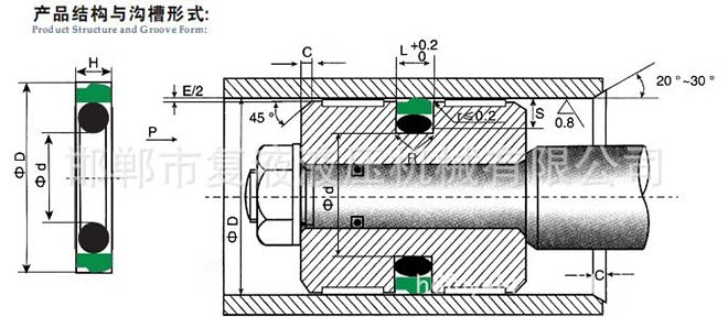 由一個階梯圈與矩形橡膠密封圈組成,矩形橡膠圈提供足夠的密封力,并對四氟階梯圈的磨耗起補償作用,矩形橡膠圈接觸壓力高,抗扭轉、負荷能力較高,與導向環配套使用。適用于大型液壓缸活密封,單向密封。