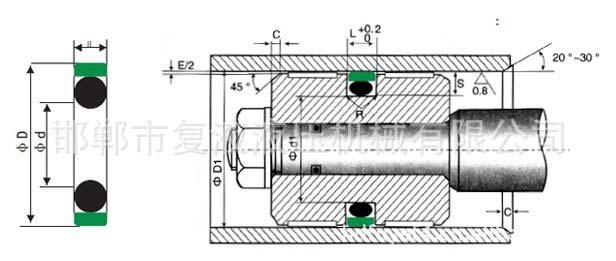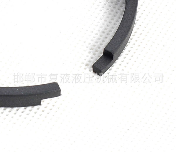 由高耐磨聚四氟乙烯合金復合材料矩形圈和O形橡膠密封圈組成。O形圈提供足夠的密封力,對矩形圈的磨耗起補償作用。與導向支撐環配套使用,缸徑小于∮40的規格應采用分體溝槽。